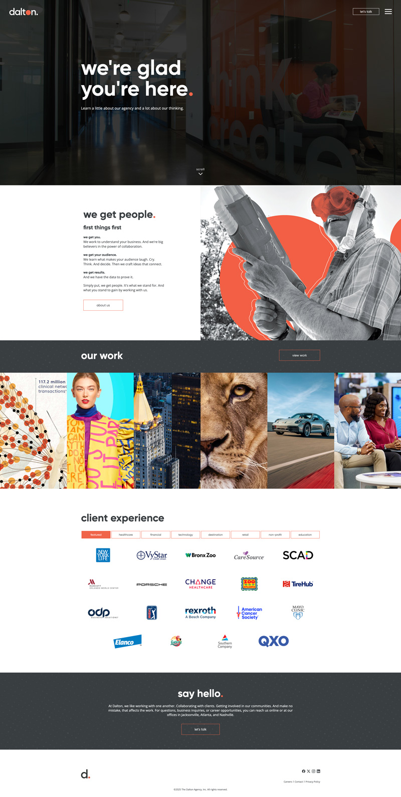 Our new visual identity features a refined wordmark and a more mature shade of orange — one that feels elevated, warm, and timeless. The creative direction leaned into Dalton’s longstanding belief that “We get people.” A sentiment that captures both our empathy for audiences and our collaborative spirit as an agency.